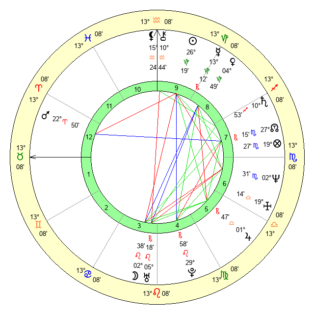 | Mars | 22 Aries 50 | 25 Cancer 58 | 4 Gemini 54 |