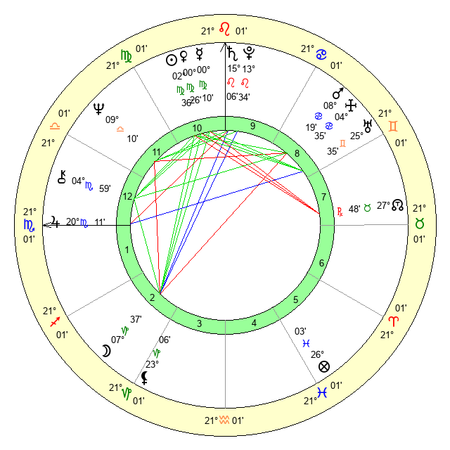| Sun | 2 Virgo 36 | 3 Virgo 42 | 19 Scorpio 28 |