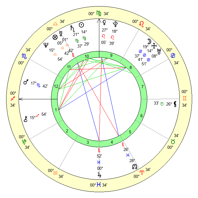 | Sun | 14 Virgo 29 | 15 Virgo 19 | 28 Scorpio 49 |