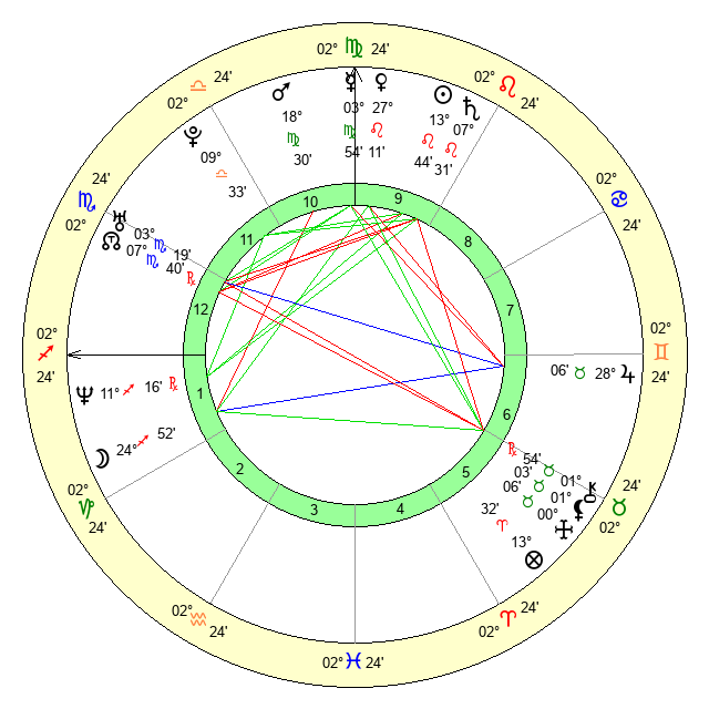| Mercury | 3 Virgo 55 | 5 Leo 40 | 27 Virgo 4 |