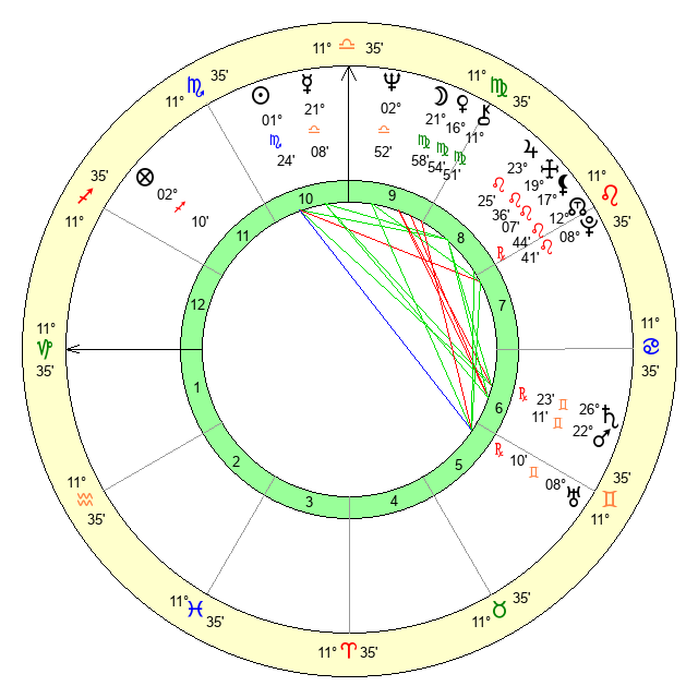 | Neptune | 2 Libra 54 | 29 Pisces 54 | 4 Libra 14 |