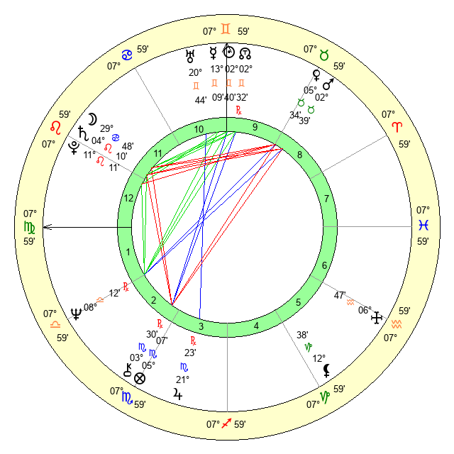 | Jupiter | 21 Scorpio 15 | 26 Gemini 23 | 18 Scorpio 33 |