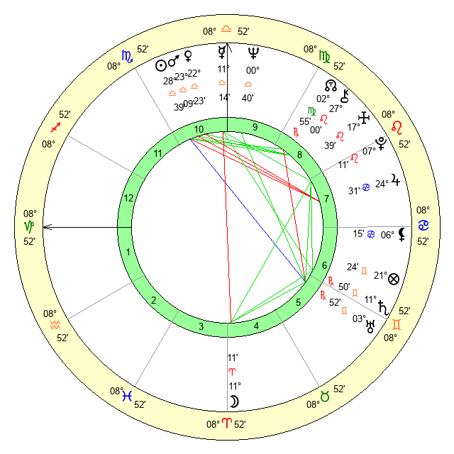 | Neptune | 0 Libra 41 | 29 Pisces 59 | 2 Libra 3 |