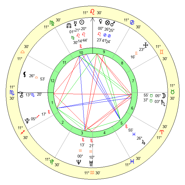 | Sun | 20 Leo 44 | 21 Leo 12 | 16 Virgo 48 |