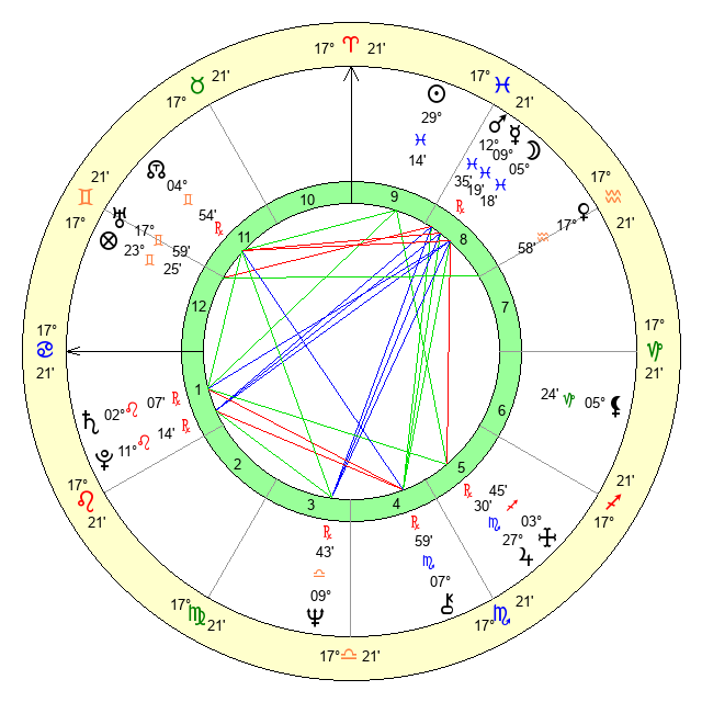 | Jupiter | 27 Scorpio 22 | 14 Gemini 21 | 19 Scorpio 45 |