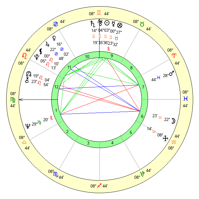 | Sun | 3 Gemini 36 | 4 Gemini 44 | 21 Leo 59 |