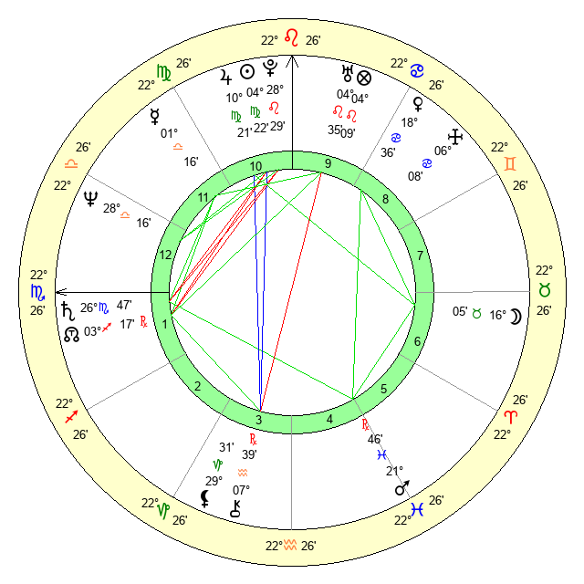 | Sun | 4 Virgo 22 | 4 Virgo 40 | 12 Scorpio 15 |