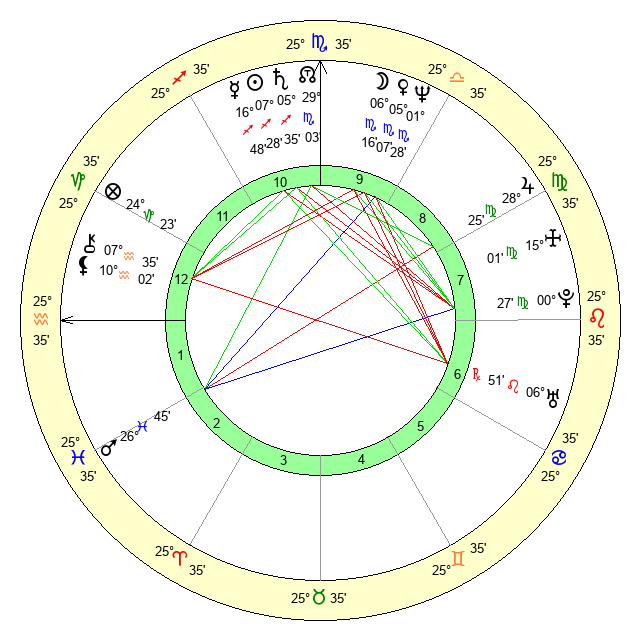 | Moon | 6 Scorpio 10 | 25 Pisces 25 | 2 Taurus 48 |
