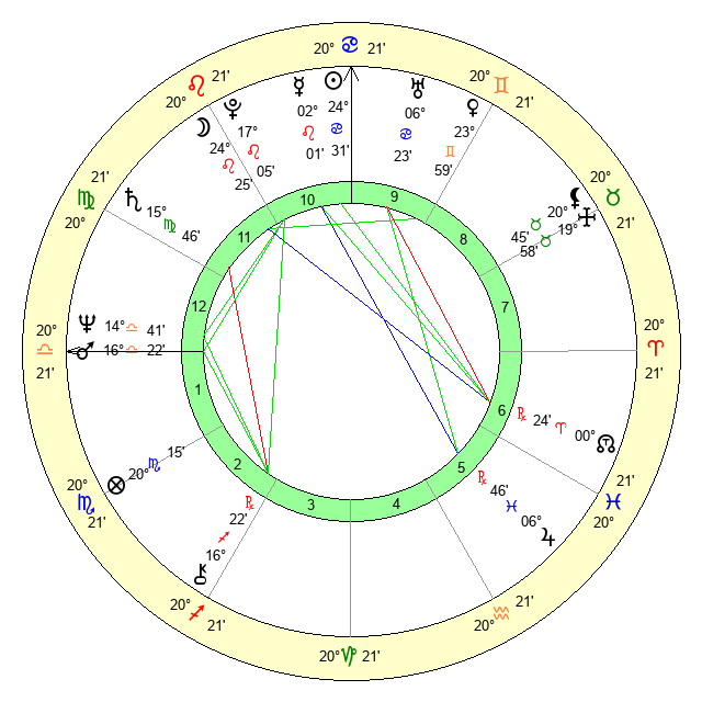 | Sun | 24 Cancer 31 | 25 Cancer 22 | 6 Libra 57 |