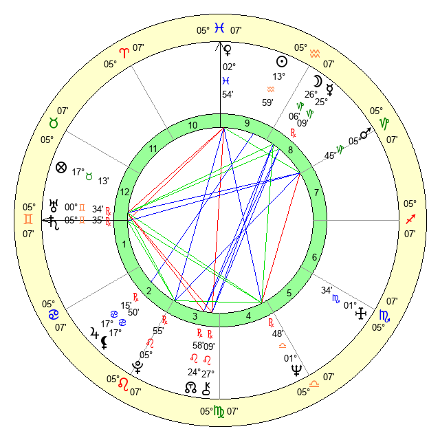 | Saturn | 5 Gemini 53 | 17 Pisces 39 | 11 Gemini 2 |