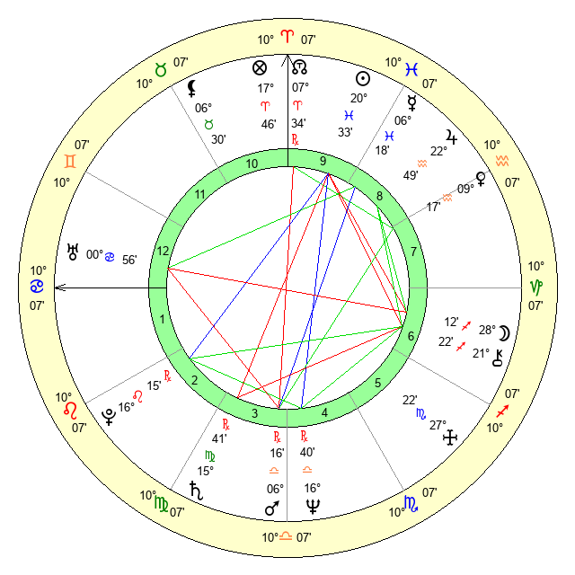 | Saturn | 16 Virgo 15 | 21 Pisces 56 | 13 Virgo 12 |