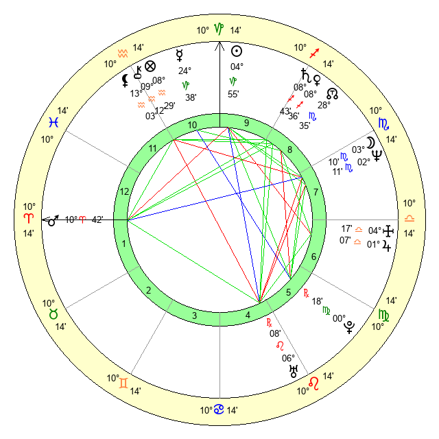 | Moon | 3 Scorpio 7 | 21 Pisces 40 | 29 Aries 53 |