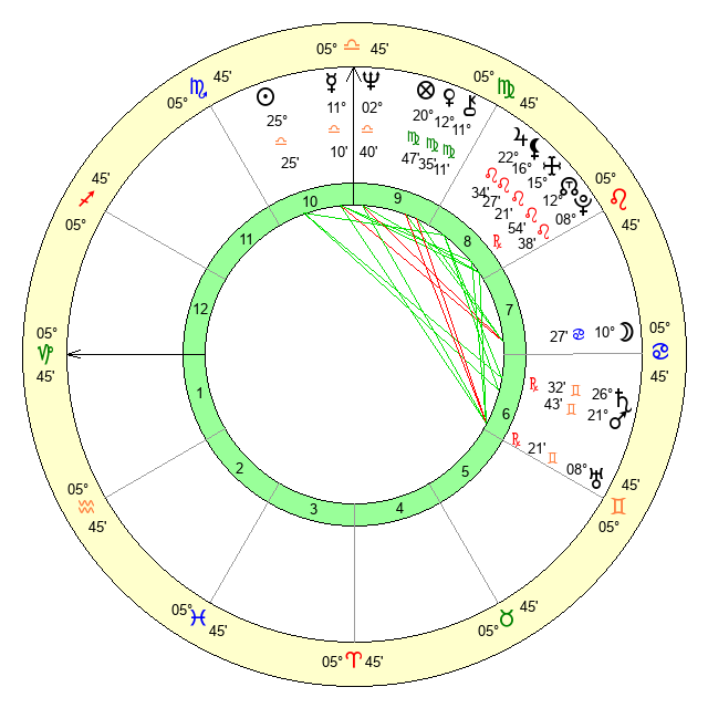 | Moon | 10 Cancer 35 | 6 Libra 28 | 10 Cancer 15 |