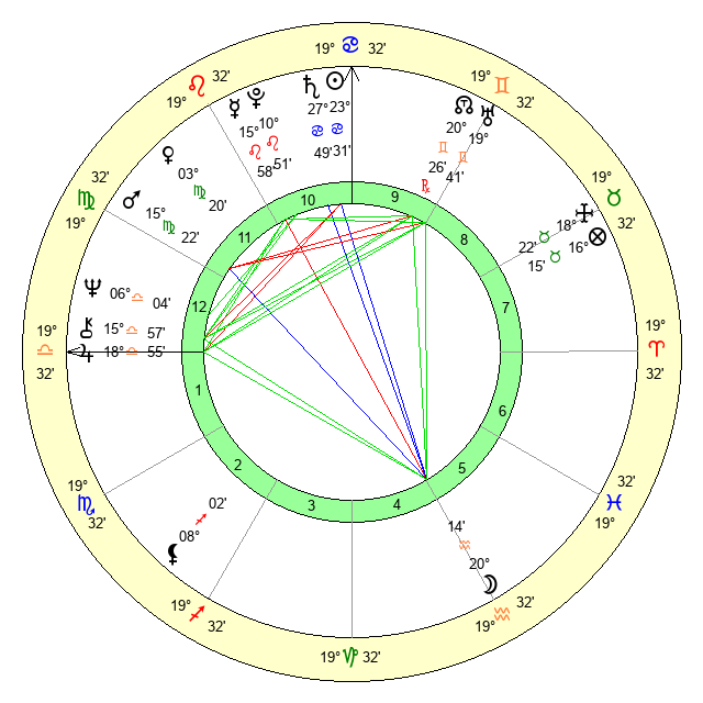 | Sun | 23 Cancer 32 | 24 Cancer 25 | 9 Libra 53 |