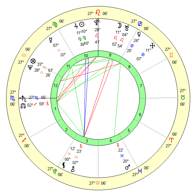 | Sun | 10 Virgo 10 | 10 Virgo 28 | 18 Scorpio 17 |