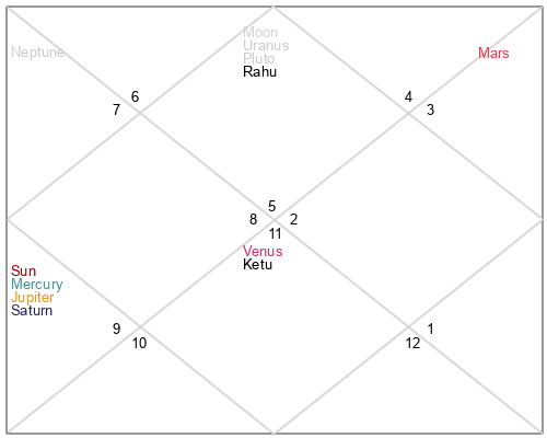 | Rahu | 9 Virgo 5 | 11 Pisces 55 | 5 Virgo 39 |