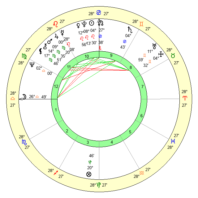 | Venus | 12 Leo 57 | 26 Gemini 1 | 22 Scorpio 39 |