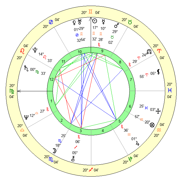 | Mercury | 10 Gemini 28 | 29 Gemini 30 | 23 Virgo 11 |