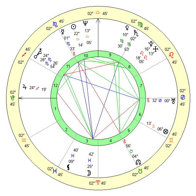 | Saturn | 3 Virgo 21 | 26 Pisces 36 | 6 Virgo 31 |