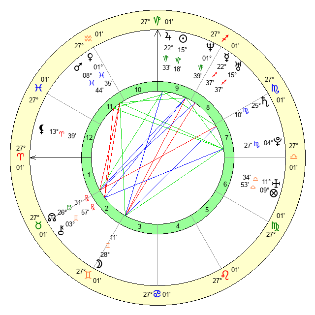 | Saturn | 25 Scorpio 26 | 14 Pisces 50 | 28 Scorpio 2 |