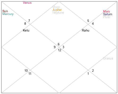 | Ketu | 1 Capricorn 11 | 13 Virgo 52 | 26 Sagittarius 57 |