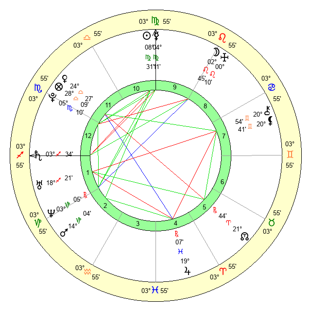 | Mercury | 4 Virgo 12 | 27 Leo 33 | 8 Scorpio 41 |