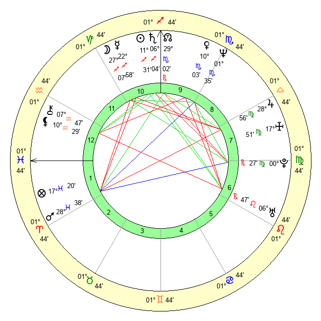 | Pluto | 0 Virgo 26 | 1 Aquarius 57 | 29 Leo 22 |