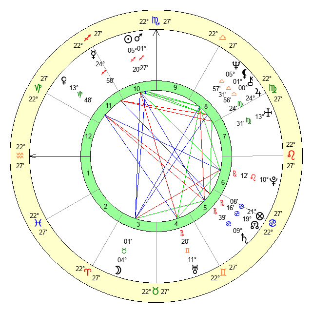 | Neptune | 5 Libra 59 | 29 Pisces 24 | 6 Libra 1 |