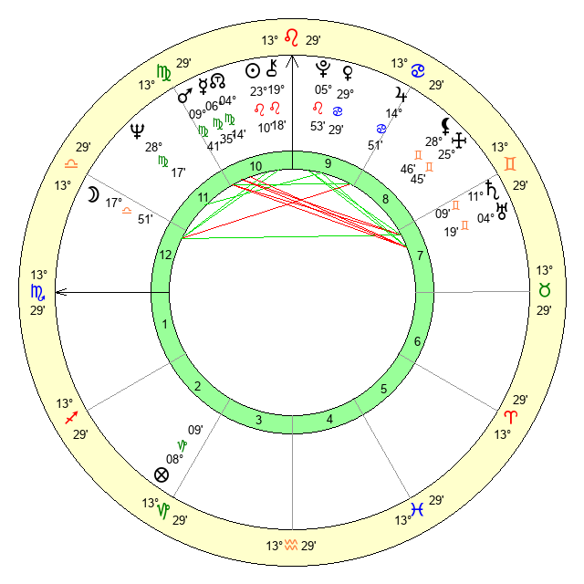 | Mars | 9 Virgo 42 | 6 Libra 7 | 3 Scorpio 54 |