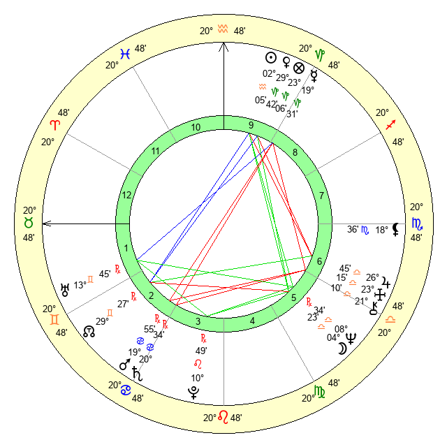 | Sun | 2 Aquarius 5 | 2 Aquarius 56 | 21 Aries 12 |
