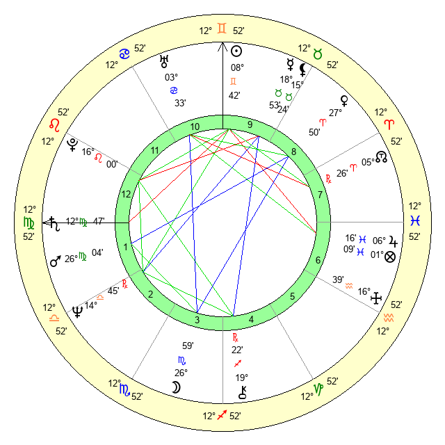 | Sun | 8 Gemini 42 | 9 Gemini 32 | 20 Leo 21 |