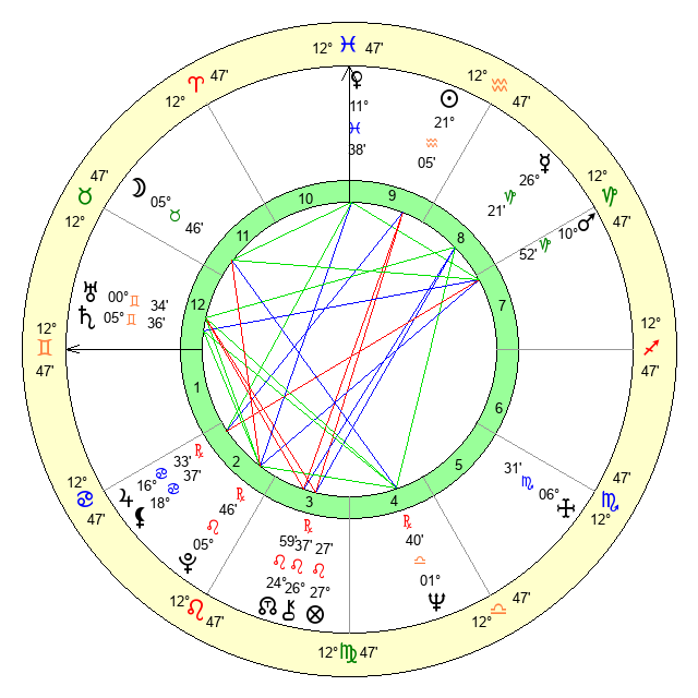 | Saturn | 5 Gemini 53 | 18 Pisces 26 | 11 Gemini 51 |