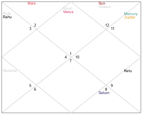 | Venus | 15 Taurus 29 | 26 Pisces 2 | 3 Virgo 31 |