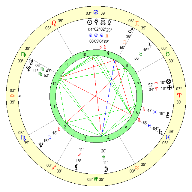 | Mars | 5 Gemini 51 | 4 Virgo 44 | 17 Cancer 4 |