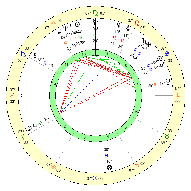 | Neptune | 5 Libra 40 | 0 Aries 57 | 8 Libra 15 |
