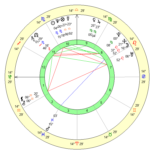 | Neptune | 0 Scorpio 19 | 29 Pisces 52 | 2 Scorpio 21 |