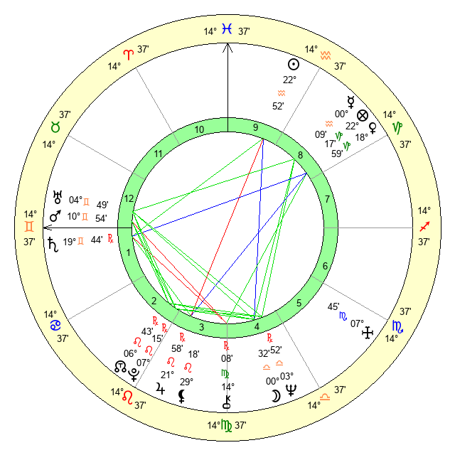 | Saturn | 20 Gemini 5 | 18 Pisces 40 | 24 Gemini 28 |