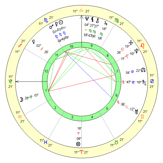 | Neptune | 5 Libra 0 | 29 Pisces 56 | 6 Libra 26 |