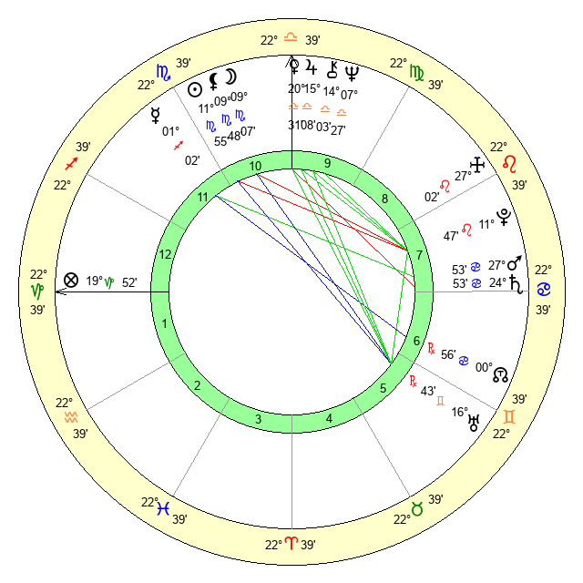 | Neptune | 7 Libra 28 | 29 Pisces 42 | 8 Libra 34 |