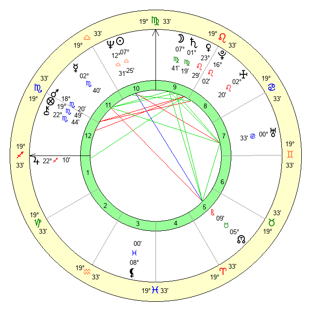 | Saturn | 1 Virgo 46 | 27 Pisces 40 | 6 Virgo 42 |