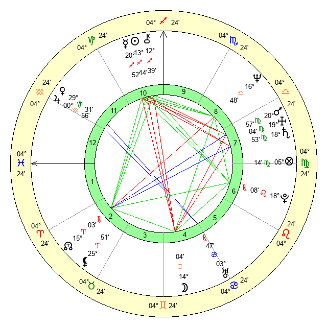 | Saturn | 19 Virgo 23 | 25 Pisces 7 | 17 Virgo 49 |