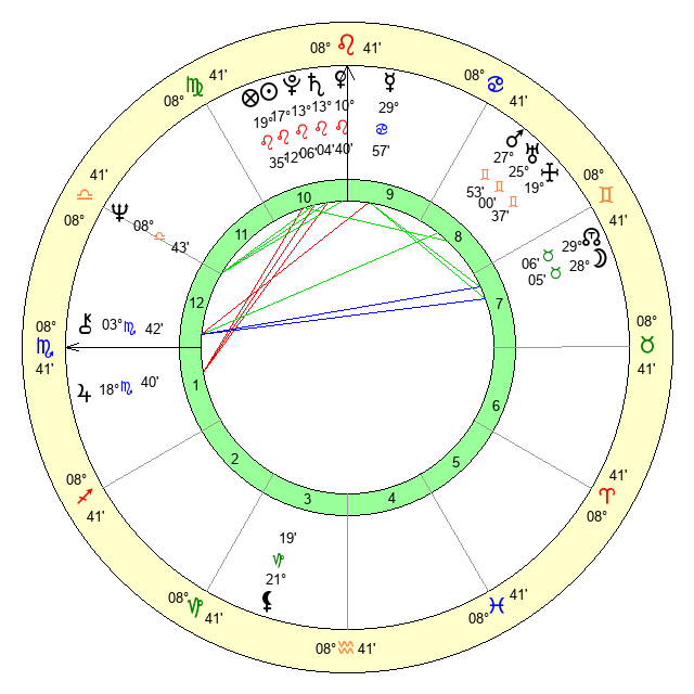 | Venus | 10 Leo 41 | 12 Cancer 17 | 17 Scorpio 38 |