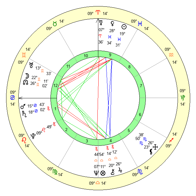 | Moon | 22 Gemini 15 | 9 Leo 35 | 6 Taurus 9 |