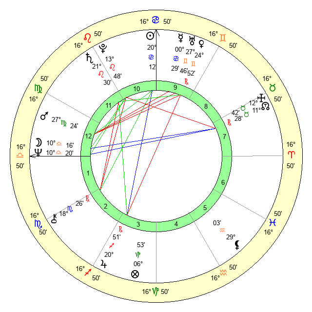 | Moon | 10 Libra 19 | 12 Aquarius 59 | 23 Cancer 38 |