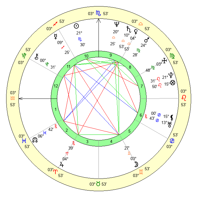 | Mars | 24 Virgo 28 | 7 Sagittarius 20 | 3 Scorpio 25 |
