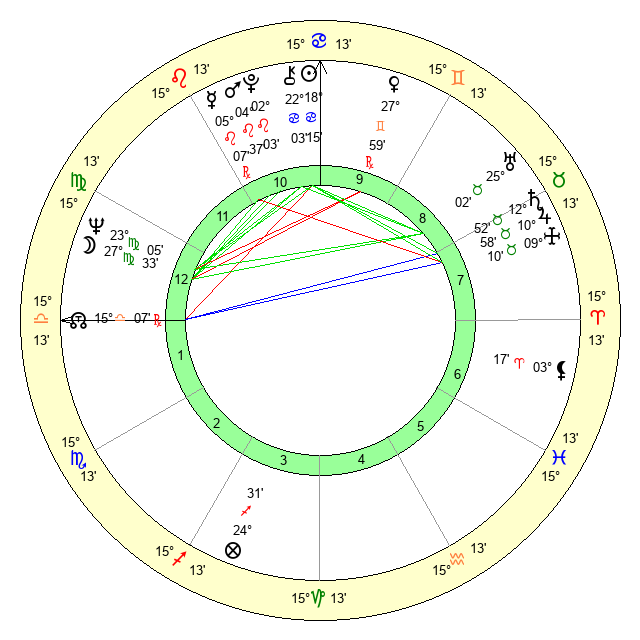 | Sun | 18 Cancer 15 | 18 Cancer 41 | 10 Libra 19 |
