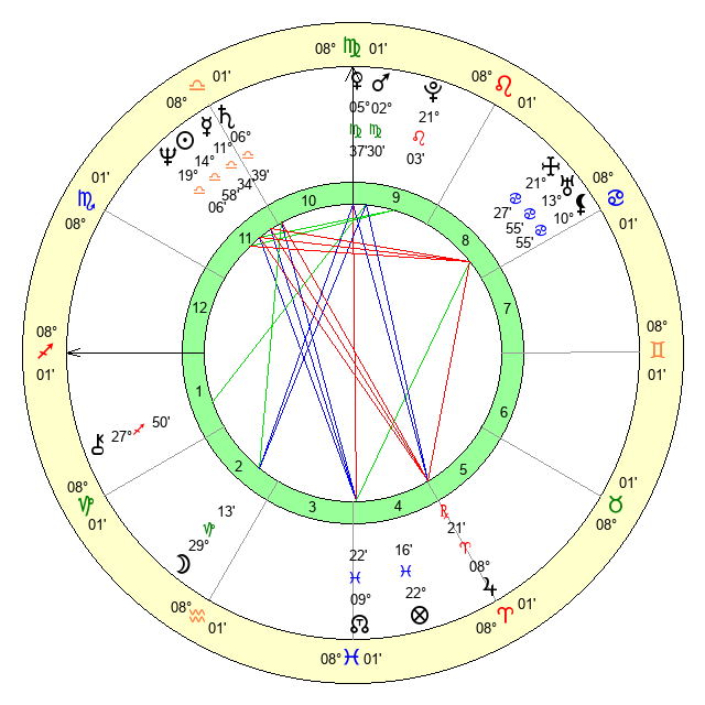 | Venus | 5 Virgo 37 | 24 Virgo 3 | 16 Scorpio 11 |