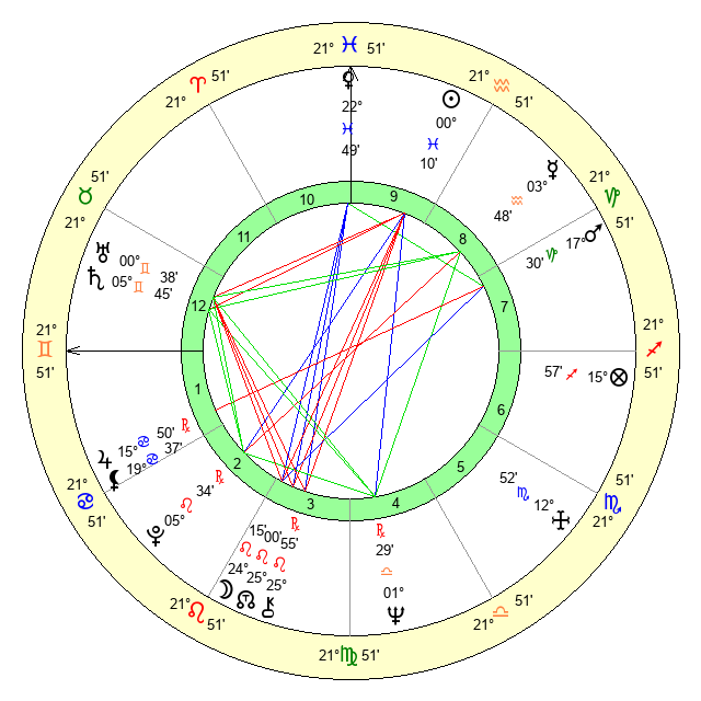 | Saturn | 6 Gemini 2 | 19 Pisces 30 | 12 Gemini 57 |