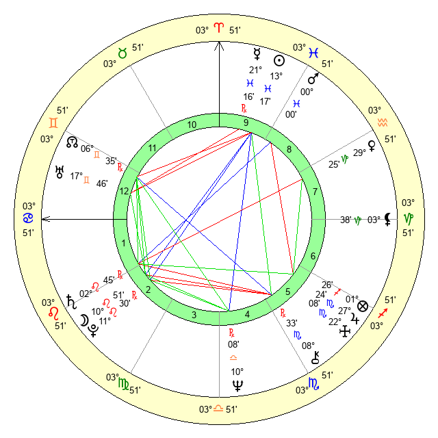 | Moon | 11 Leo 5 | 18 Taurus 21 | 15 Gemini 29 |