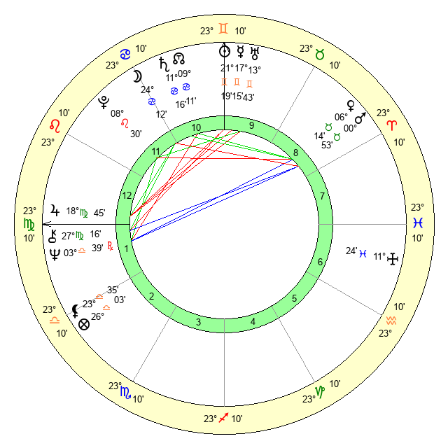 | Moon | 24 Cancer 13 | 7 Capricorn 55 | 27 Gemini 38 |
